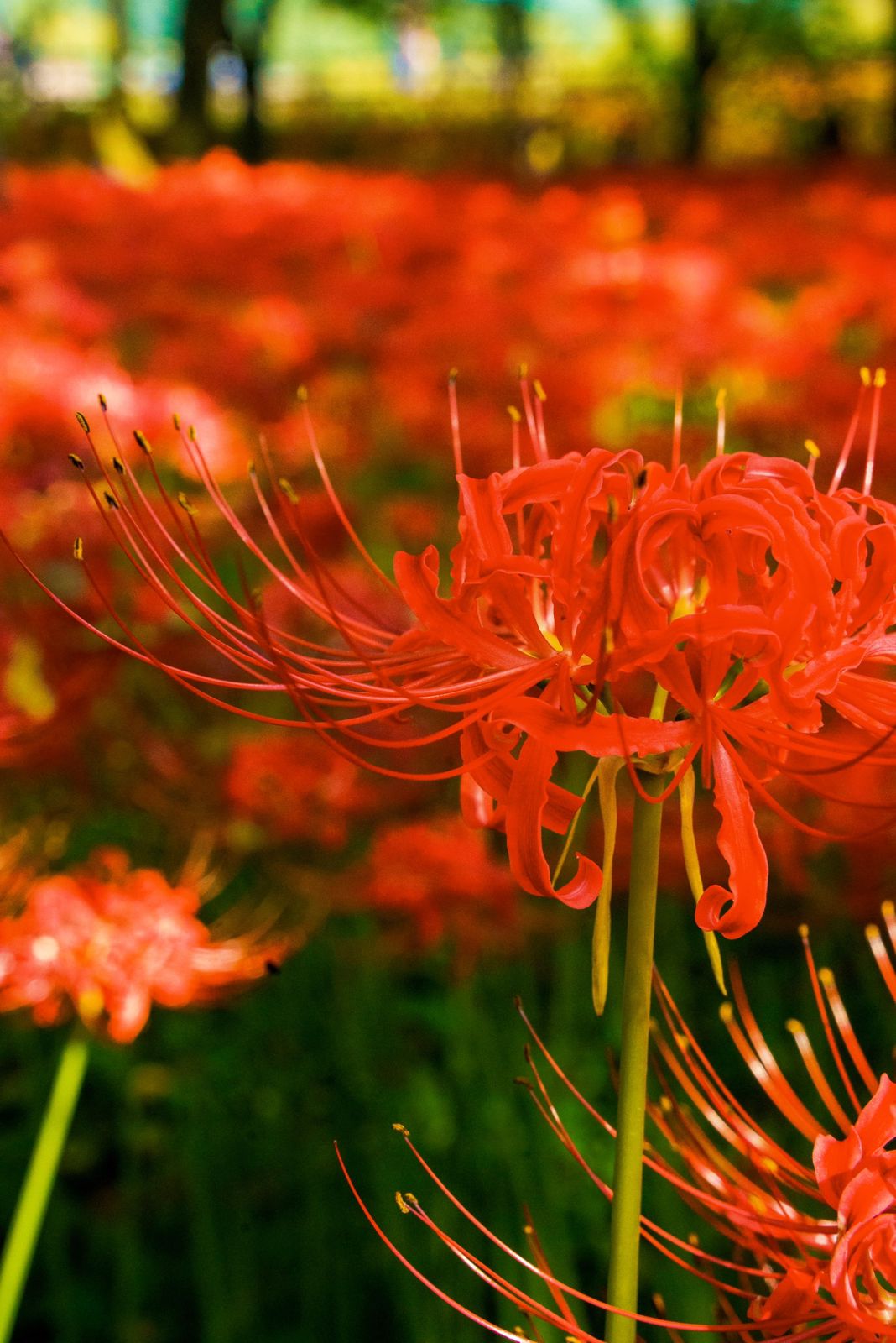 Pemandangan paling ikonik bisa kamu temukan di Kinchakuda Manjushage Park, dimana jutaan bunga berwarna merah darah ini menciptakan lanskap yang dramatis.